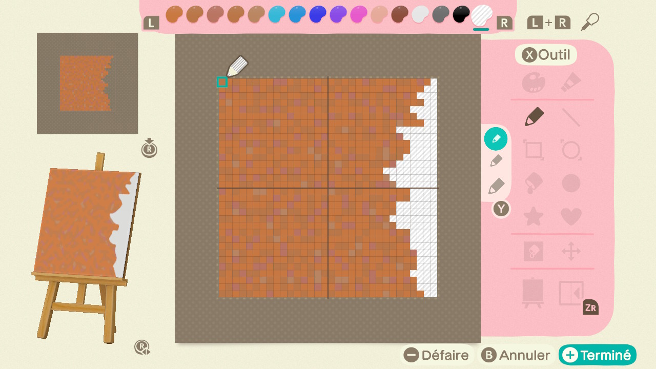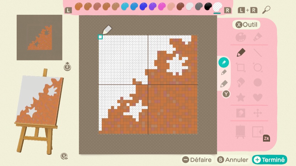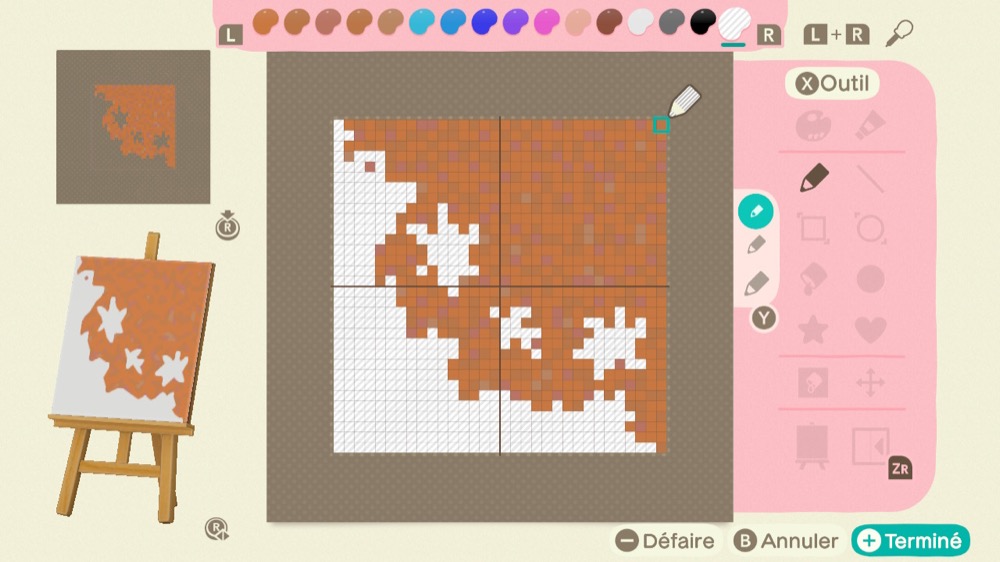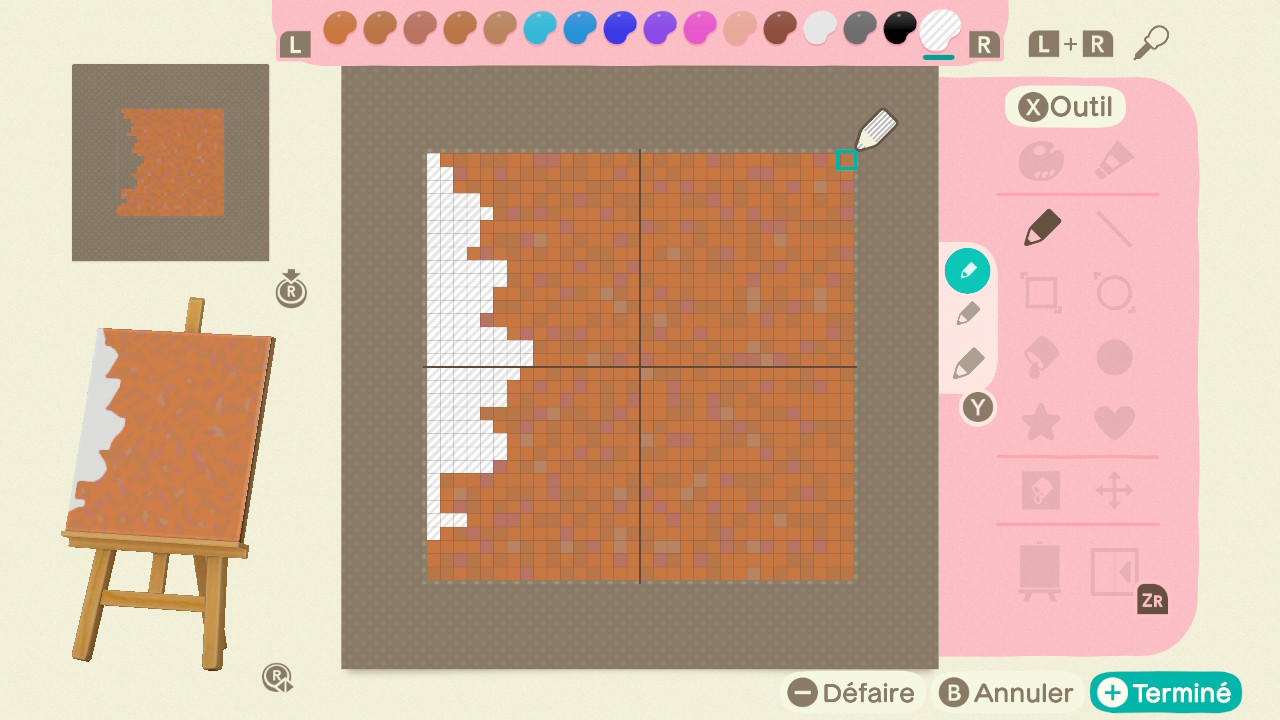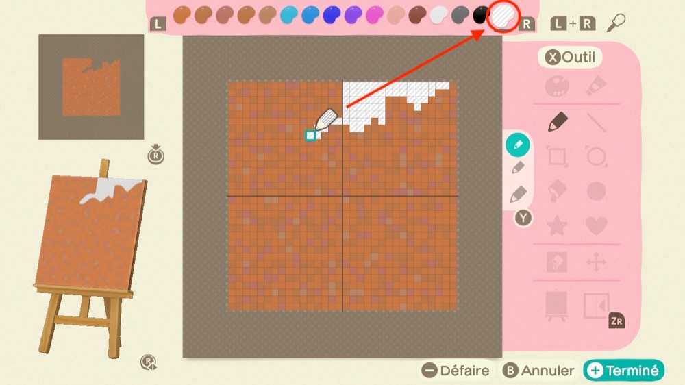 Façonnez 9 motifs en utilisant des couleurs transparentes. La couleur transparente se trouve à l’extrême droite de la palette de couleurs.