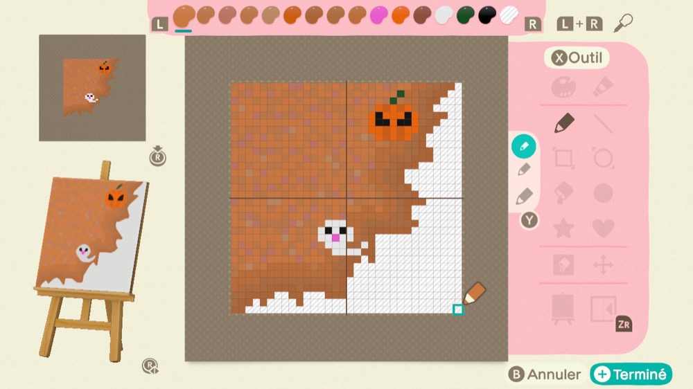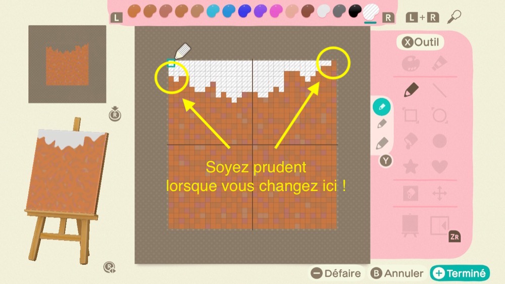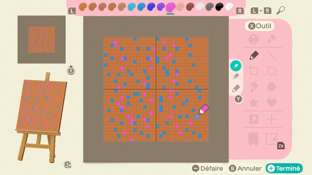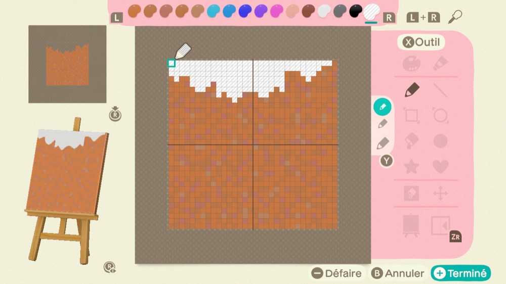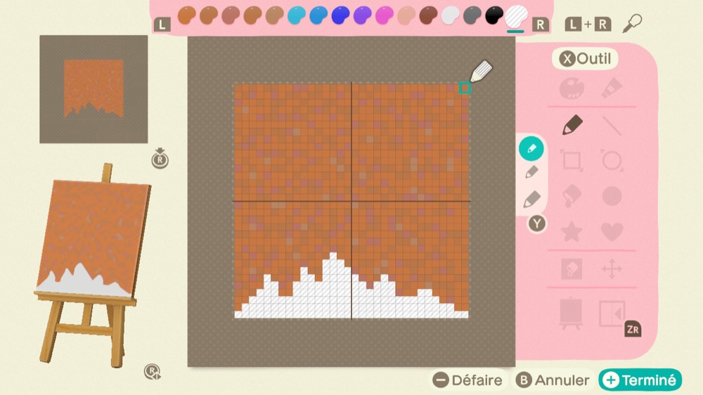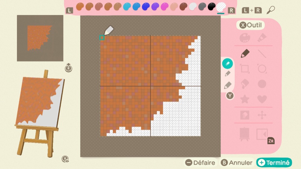 Façonnez 9 motifs en utilisant des couleurs transparentes. La couleur transparente se trouve à l’extrême droite de la palette de couleurs.