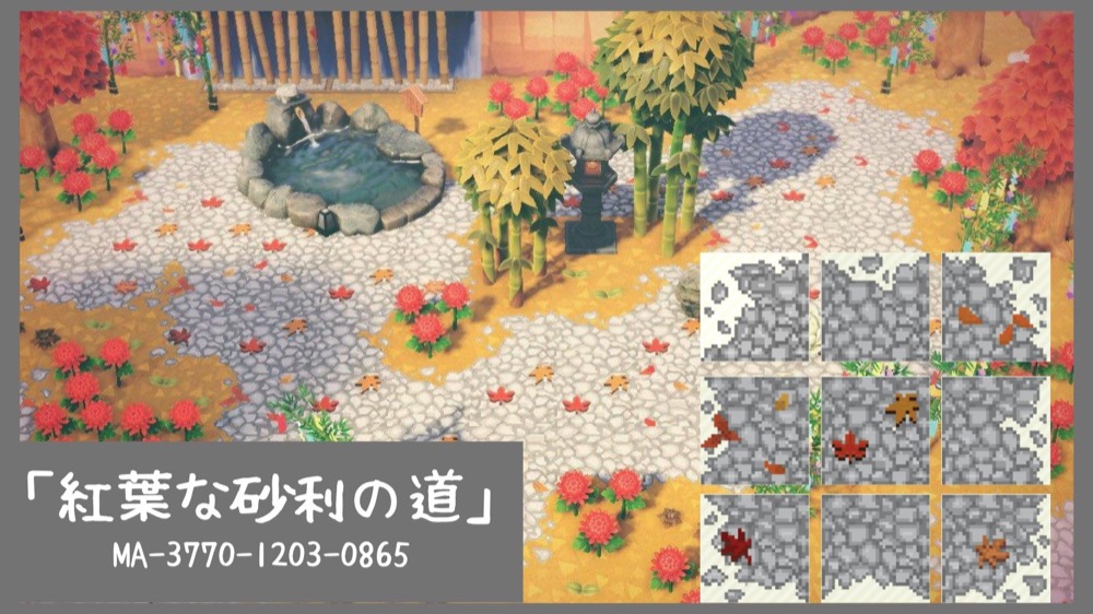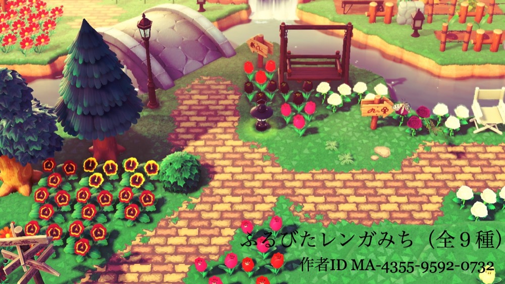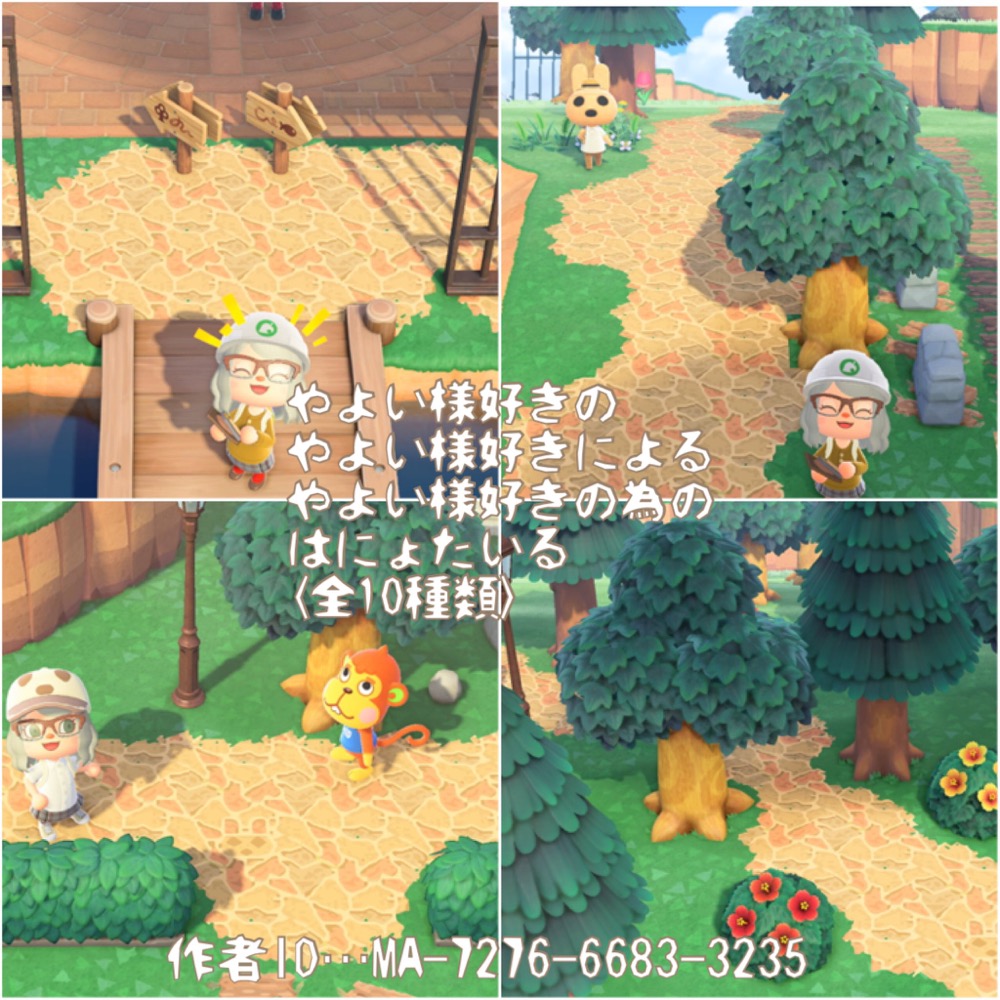 « The Path » est un motif de sol créé par @Denim2_mori et a été développé pour ceux qui craignent que la route créée par Remod’île soit trop anguleuse. La version originale se compose de neuf motifs et peut être obtenue à partir de ID de stylist « MA-6647-9230-4716 ».