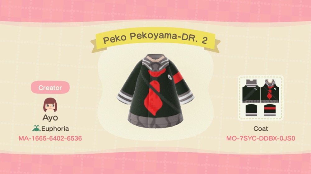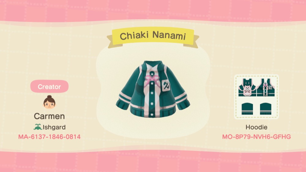Dans cet article, nous présenterons les motifs persos inspirés par le jeu vidéo très populaire « DANGANRONPA 2 : Goodbye despair » pour Animal Crossing New Horizons !!!