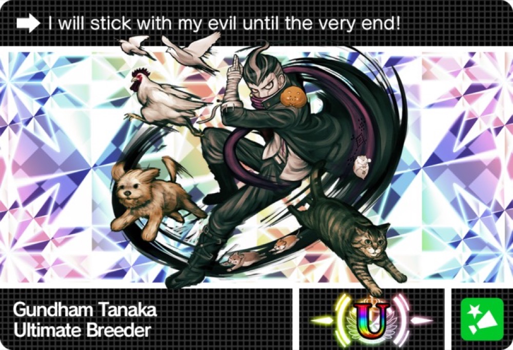 En tant que l’Ultime Éleveur, il n’y a pas un seul animal que GUNDHAM Tanaka ne puisse apprivoiser. Non seulement a-t-il réussi à réhabiliter une espèce en voie de disparition, mais il paraît aussi qu’il est même capable de tenir des conversations avec ses animaux. Ses hamsters de compagnie – ou Les Quatre Saints Rois de la Pénombre et Dieux de la Destruction, comme il les appelle – sortent souvent leur tête du dessous de son écharpe, et GUNDHAM pense sincèrement qu’ils domineront un jour le monde.