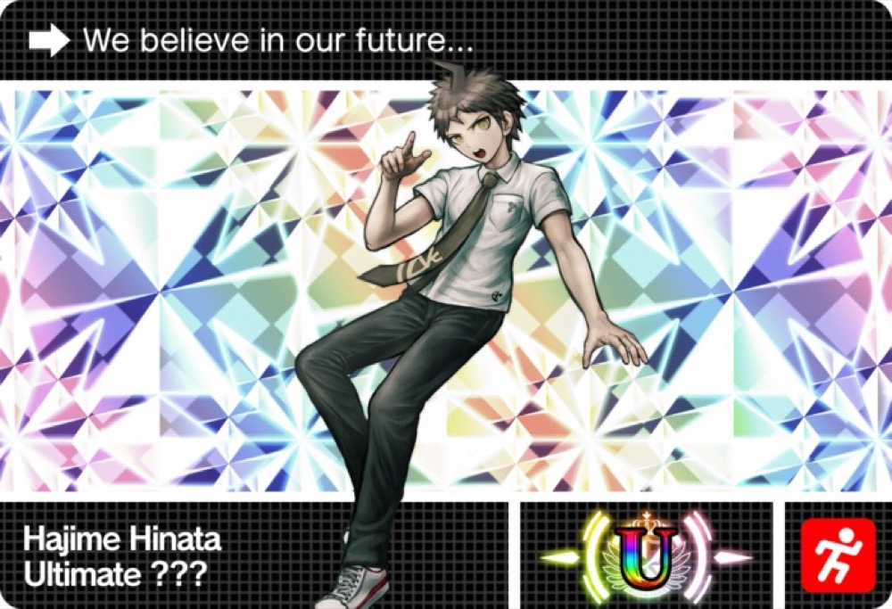HAJIME Hinata est le protagoniste du jeu. Il a perdu les souvenirs de sa vie avant son arrivée sur l’Île Jabberwock et ne se souvient même pas de son talent, considéré Ultime ??? pour cette raison. Même dans une situation surréelle de meurtres et mystères, HAJIME fait de son mieux pour rester positif et traquer les coupables pour survivre.