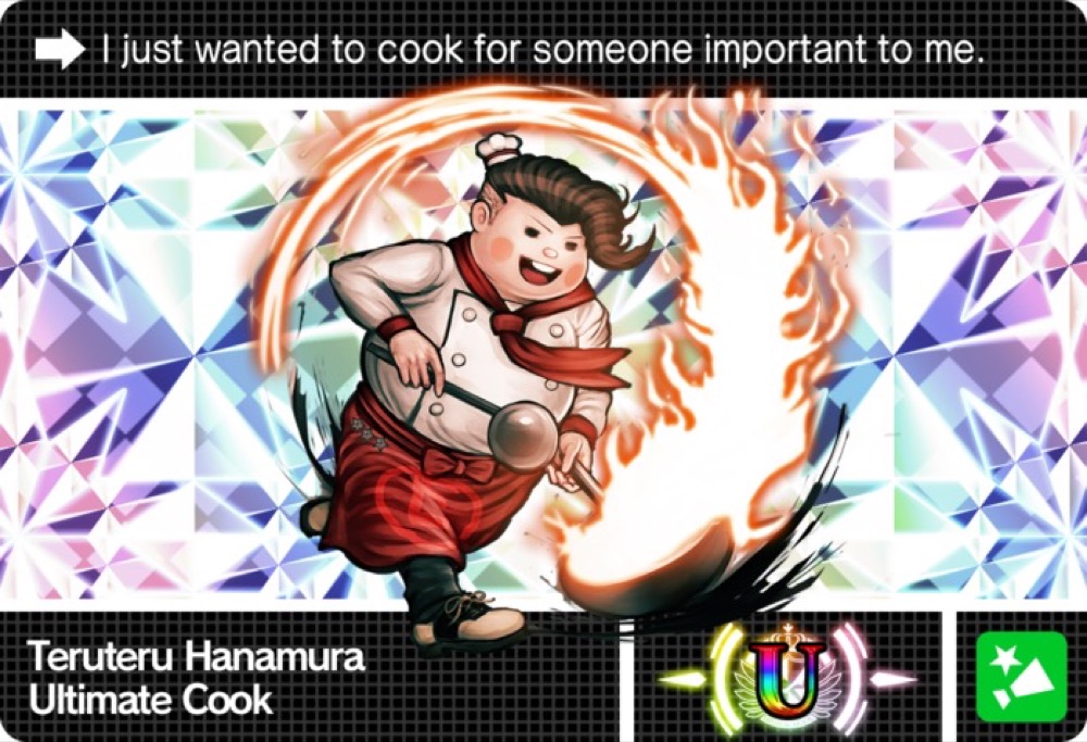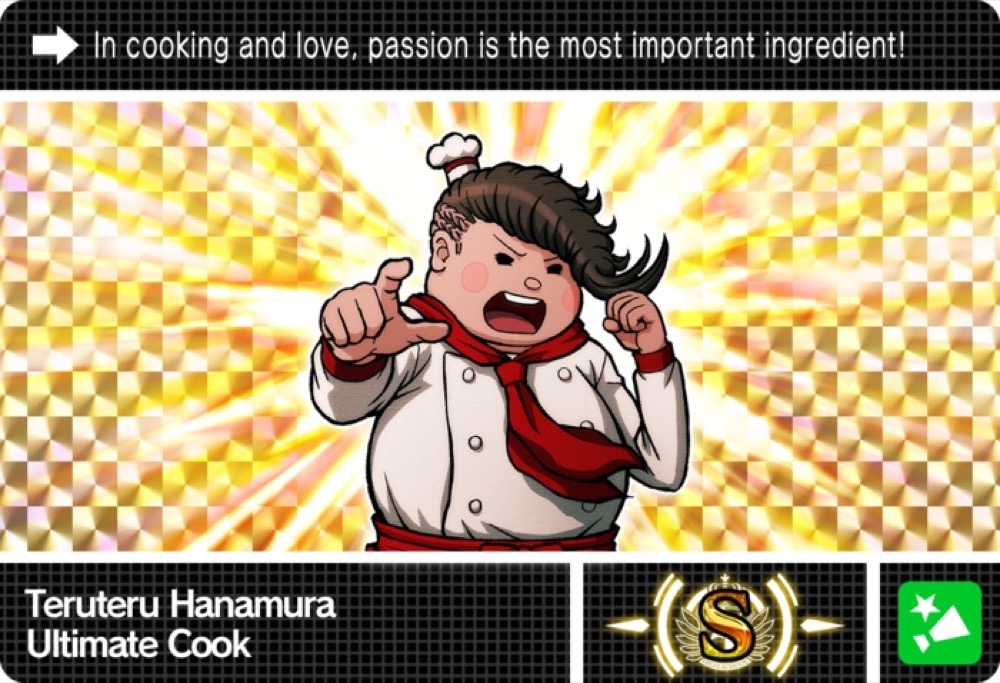 L’Ultime Chef Cuisinier aime se prétendre citadin, mais en réalité, la ville d’origine de TERUTERU Hanamura se trouve dans la campagne. Ses passions incluent la nourriture et le sexe, et il semble penser avoir une chance avec Peko. Bien-sûr, il pense aussi avoir une chance avec Sonia. Et avec certains garçons aussi…