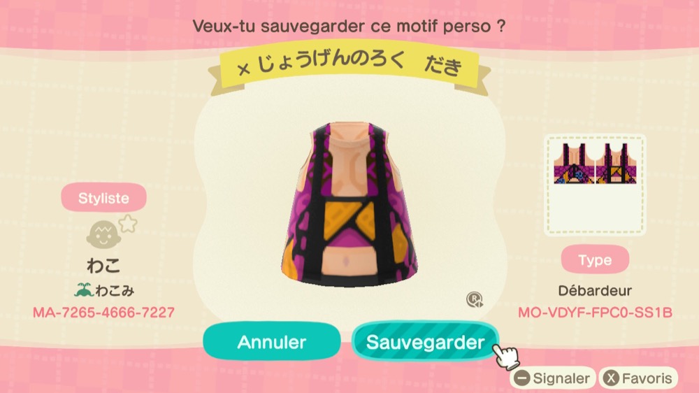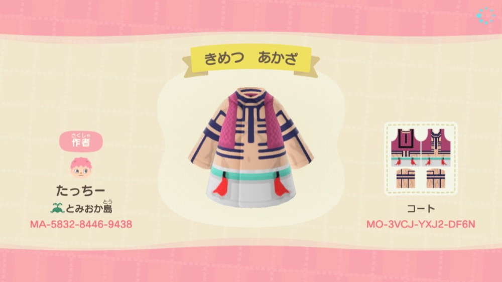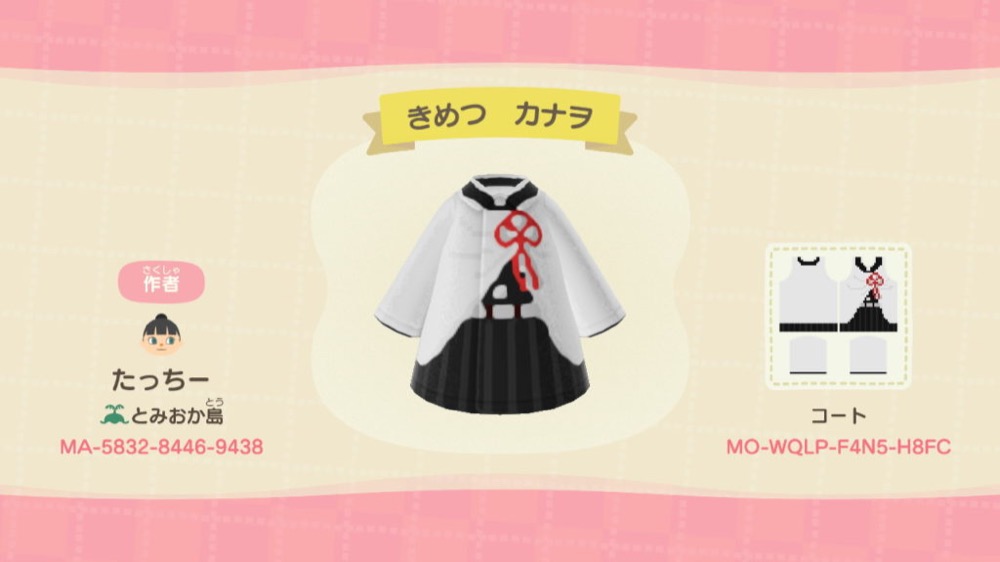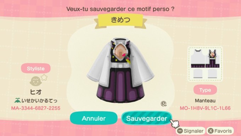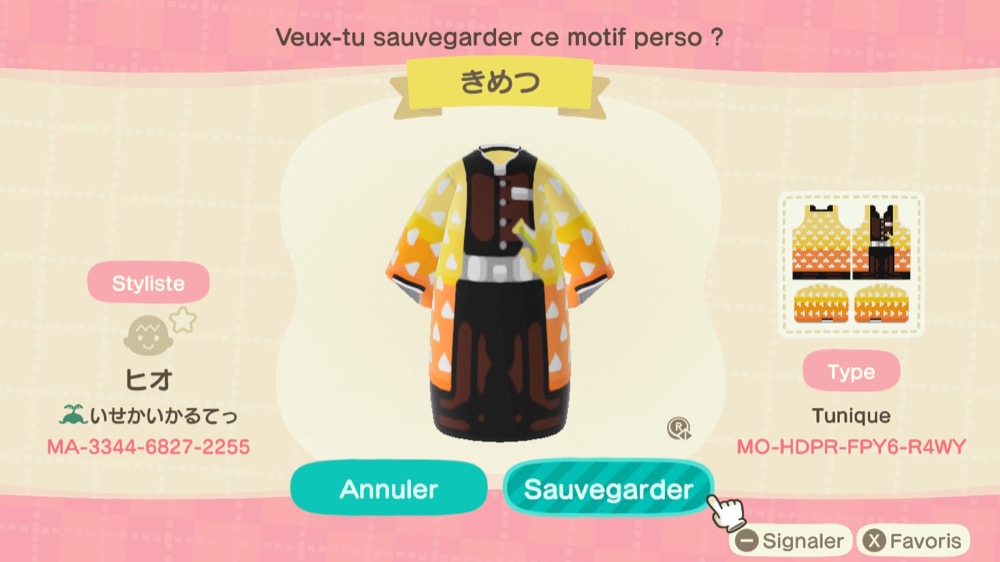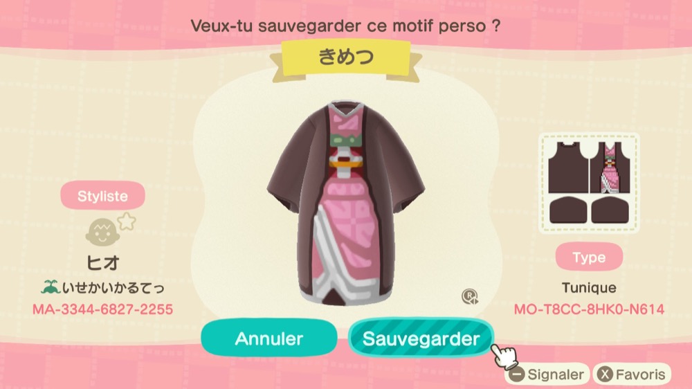 2020.10.11Dans cet article, nous présenterons les motifs persos de RUI de Demon Slayer qui peuvent être utilisés dans Animal ...