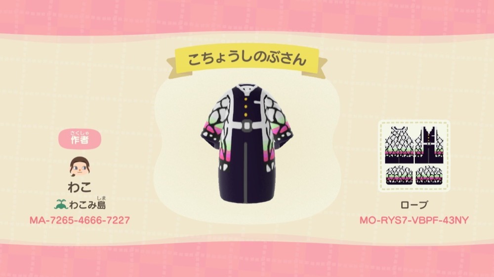 2020.10.08Dans cet article, nous présenterons les motifs persos de SHINOBU KOCHO de Demon Slayer qui peuvent être utilisés da...