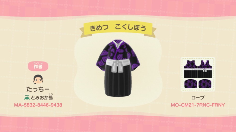 Dans cet article, nous présenterons les motifs persos de KOKUSHIBO de Demon Slayer qui peuvent être utilisés dans Animal crossing.