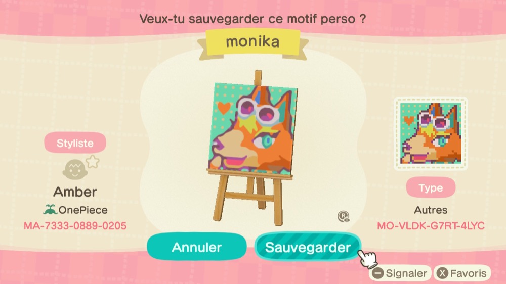 Alors, voici notre sélection de motifs persos pour Animal Crossing New Horizons inspirés par MONICA !
