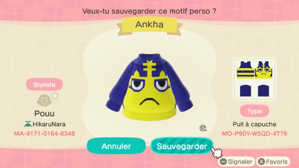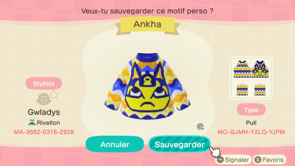 Dans le jeux video Animal Crossing New Horizons, vous povez télécharger de nombreux vêtement que la communauté créative et ingénieuse du jeu s’en donne à coeur joie et propose pour habiller vos villageois. Sur Internet, il y a de nombreux de motifs persos inspirés par les Résidents d’île ! Cette fois, C’est au tour de NEFERTI !!!!