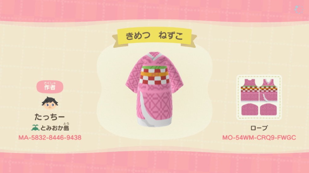 Voici notre sélection de motifs persos de vêtements pour Animal Crossing New Horizons inspirés par NEZUKO KAMADO de Demon Slayer !