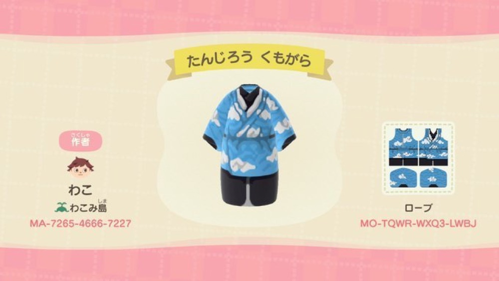 Voici notre sélection de motifs persos de vêtements pour Animal Crossing New Horizons inspirés par TANJIRO KAMADO de Demon Slayer !